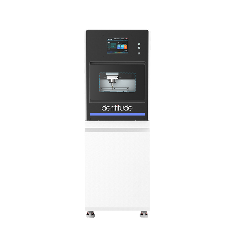 A versatile five-axis wet grinder for dental glass-ceramic blocks, resin blocks, and pre-milled titanium abutment blanks.